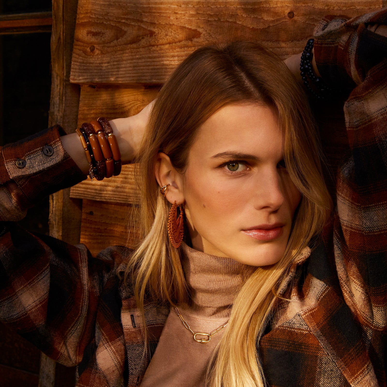 Découvrez les coloris exclusifs de nos joncs, nos boucles d’oreilles, et nos bagues en acétate.