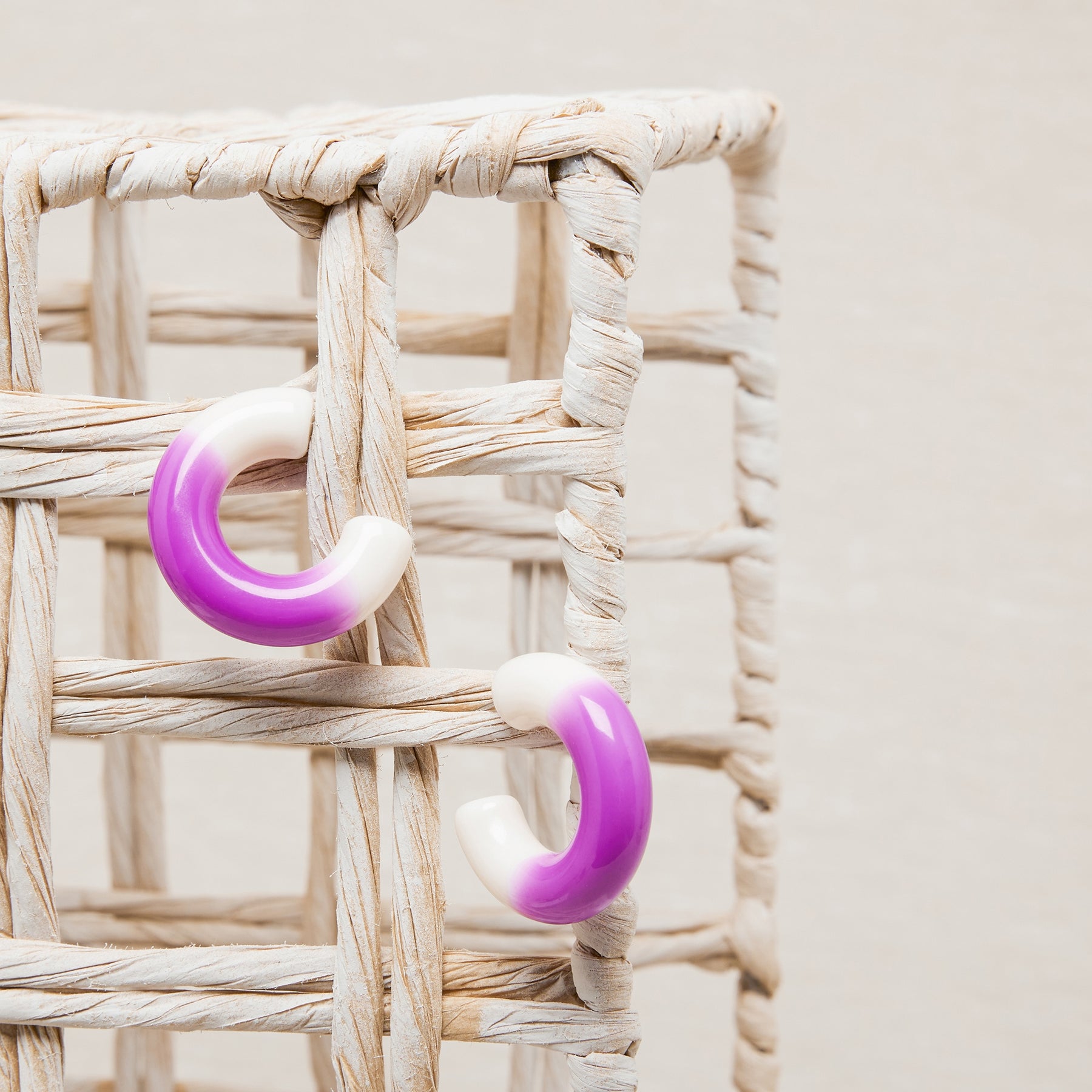 Créoles ouvertes en acétate bicolore effet tie and dye.