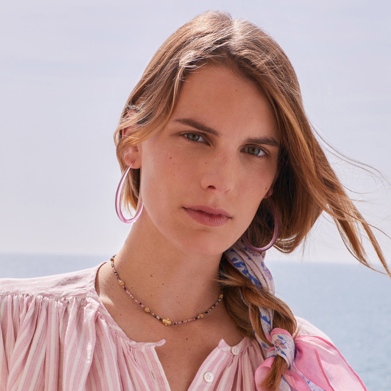 Découvrez les coloris exclusifs de nos joncs, nos boucles d’oreilles, et nos bagues en acétate.