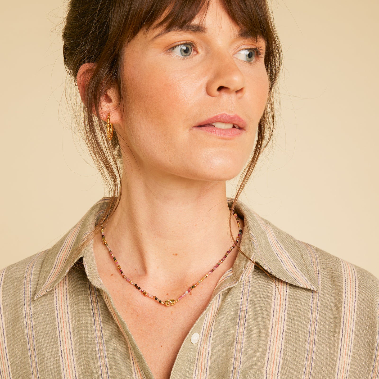 Laiton doré à l'or fin et tourmaline multicolore