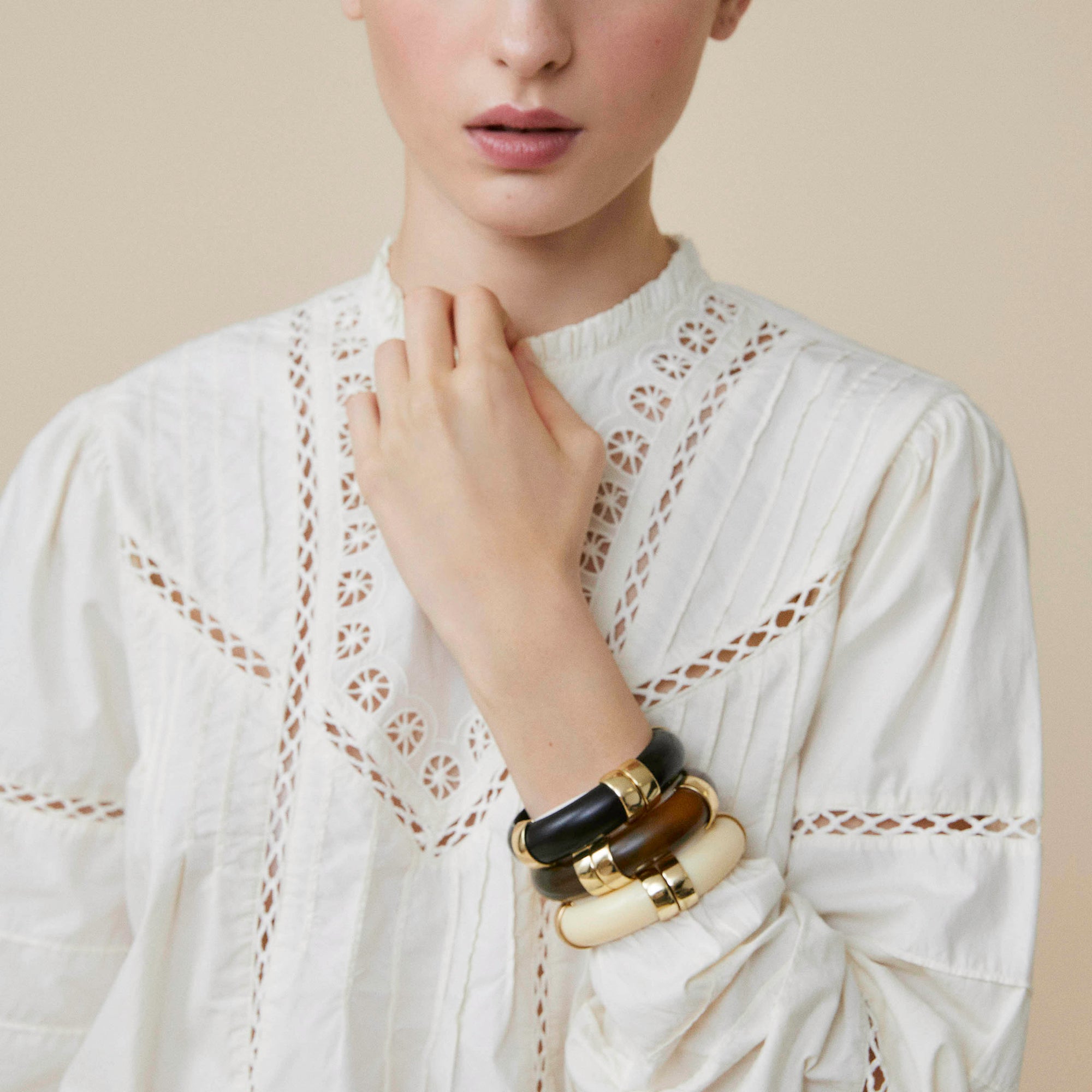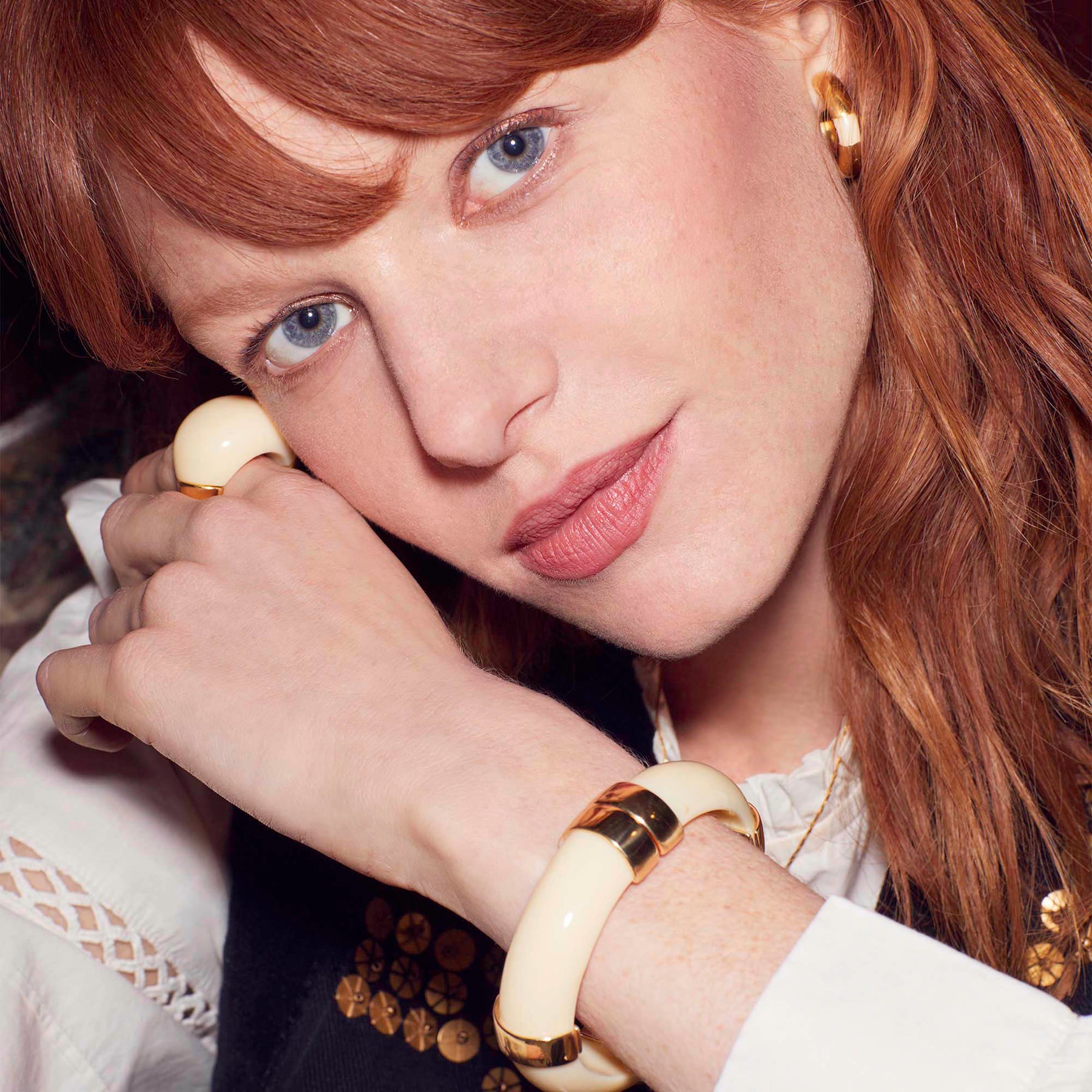 Découvrez les coloris exclusifs de nos joncs, nos boucles d’oreilles, et nos bagues en acétate.