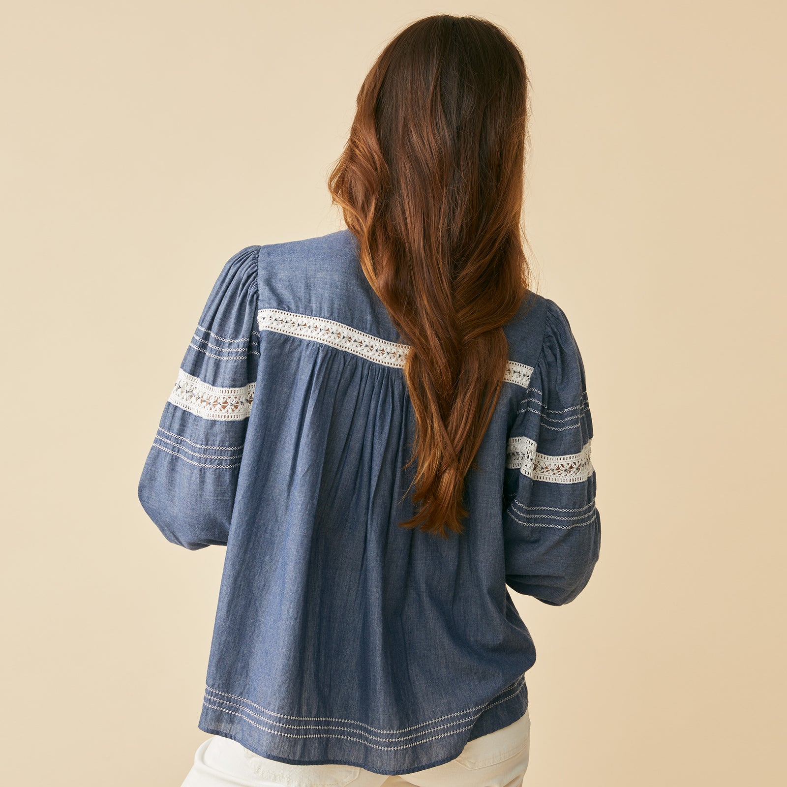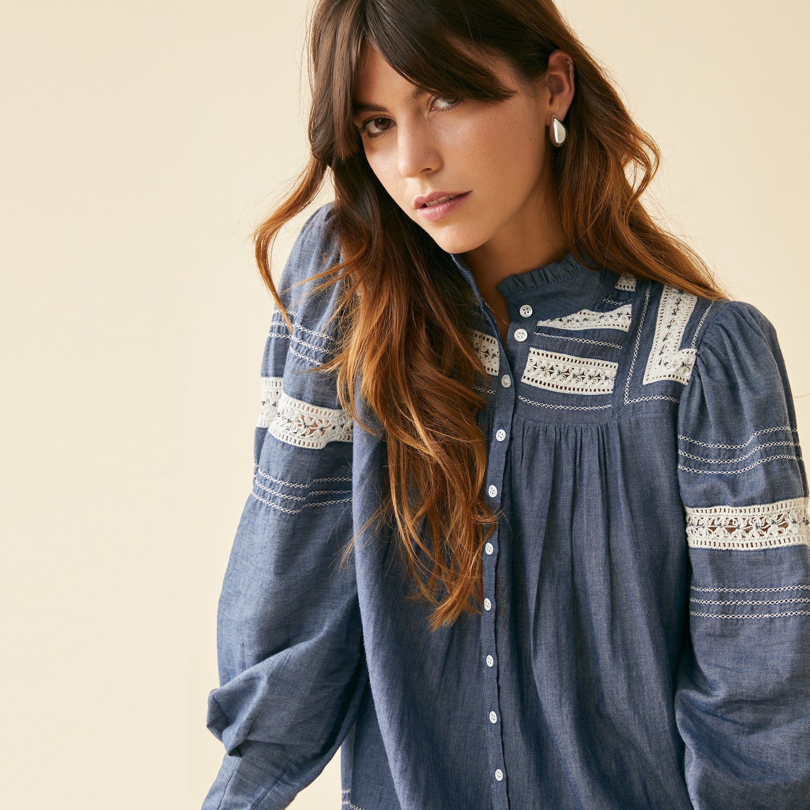 Blouse manches longues en chambray.