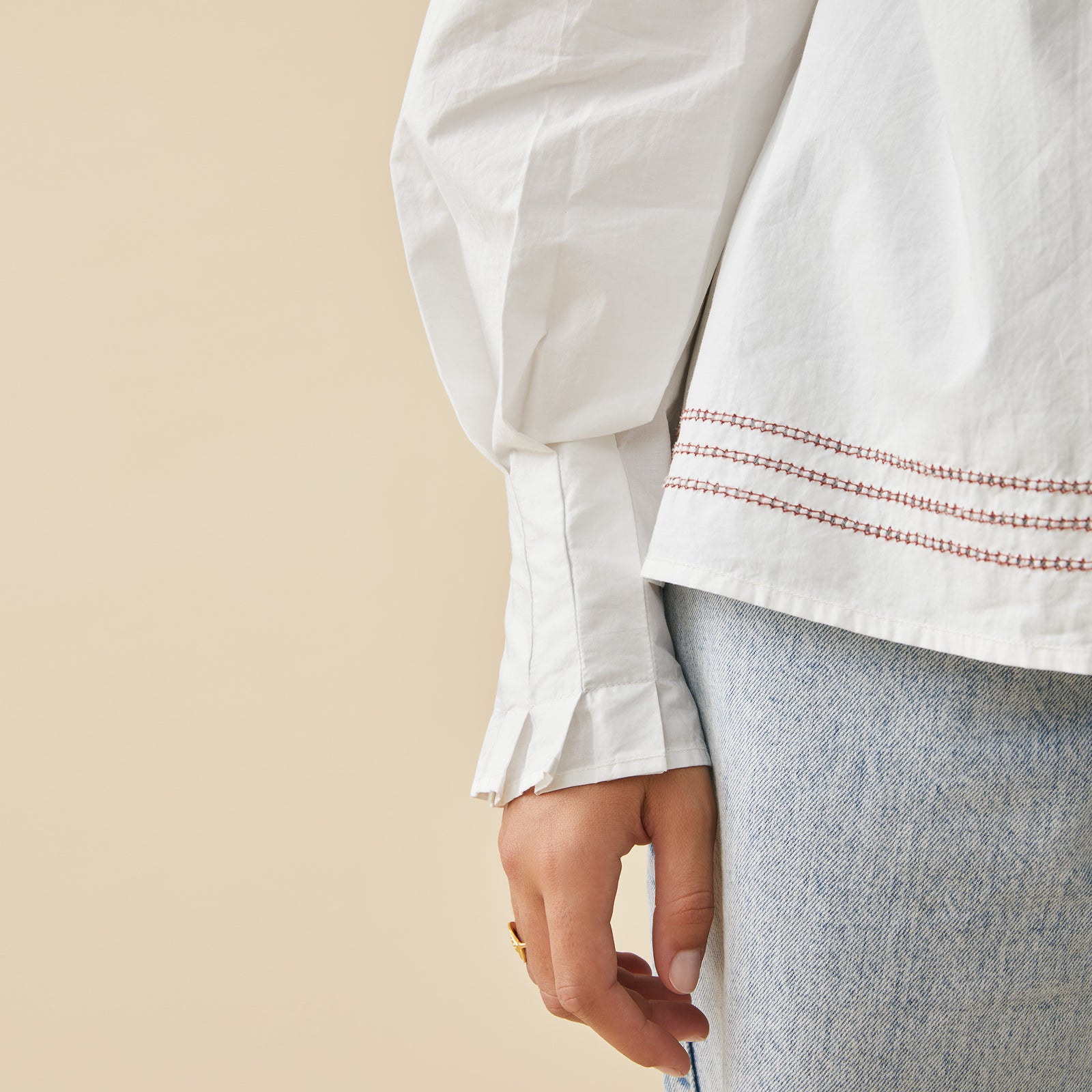 Poignets plissés.