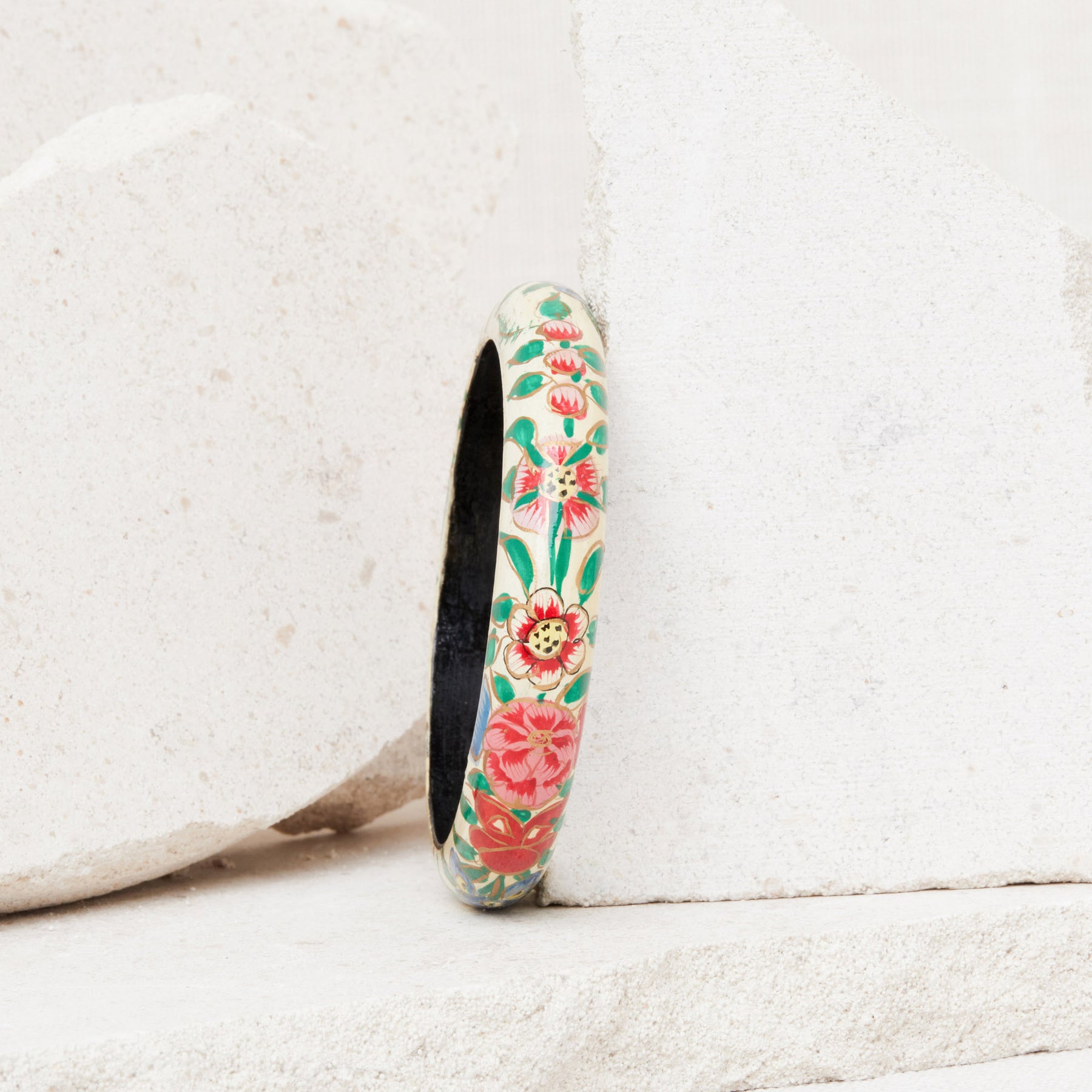 Jonc fin bombé en bois peint à la main, dessin floral.
