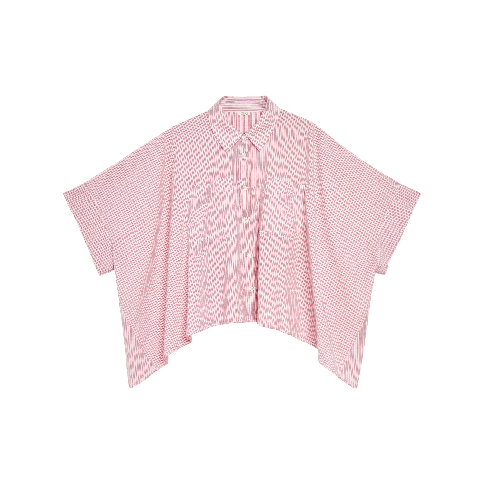 Notre chemisier a rayures Boxy avec manches esprit kimono en coton tissé à la main. Chemise en coton léger Volume oversize. Large revers à la manche. Poches plaquées à l’avant. Col chemise. Patte de boutonnage 7 boutons nacre. Motif rayé contrasté.