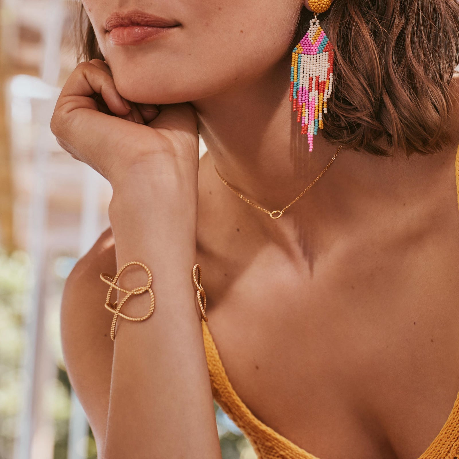 Jonc manchette ajourée ouvrant, anneau torsadé, Finition brillante.