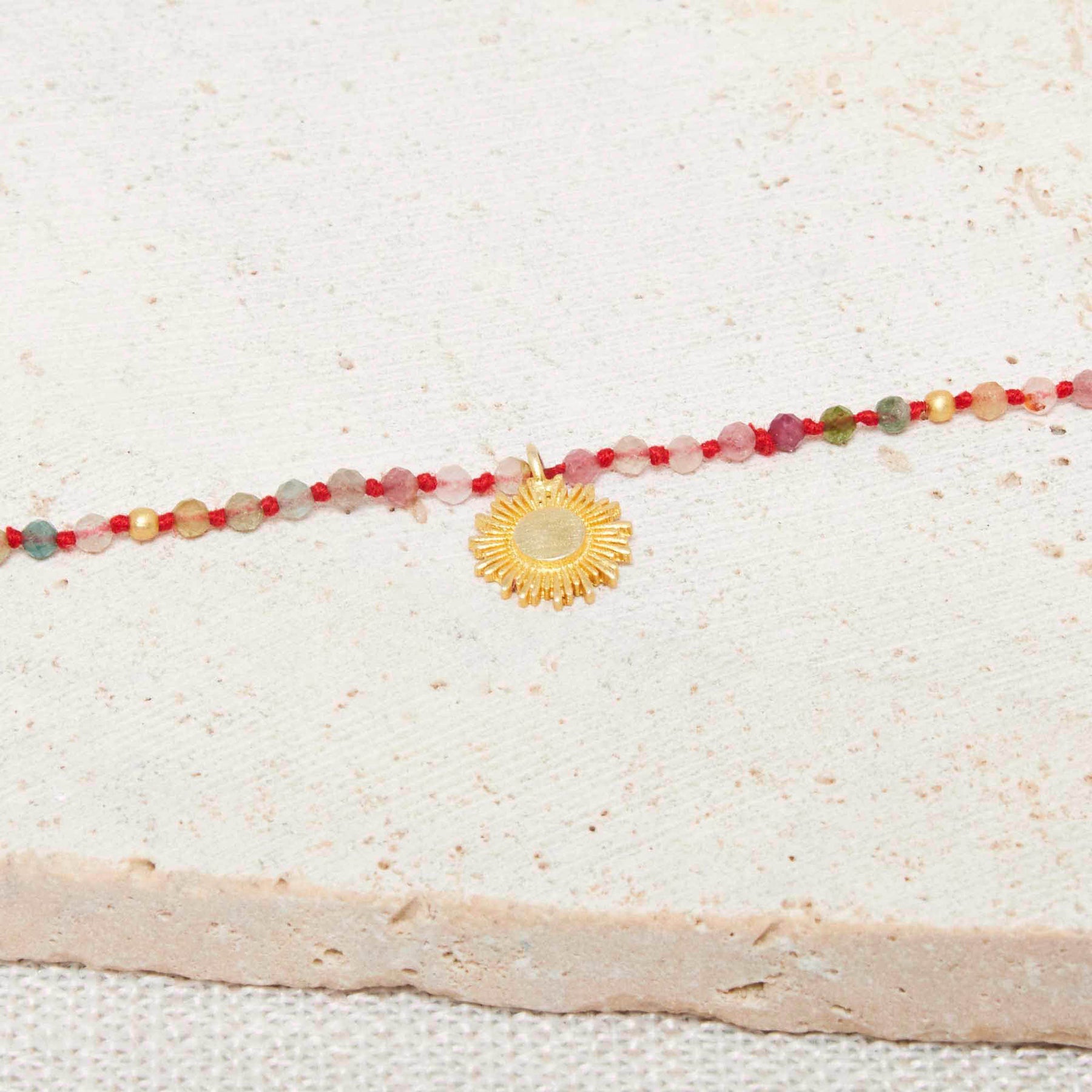 Tourmaline- Laiton doré à l'or fin - Fil polyester