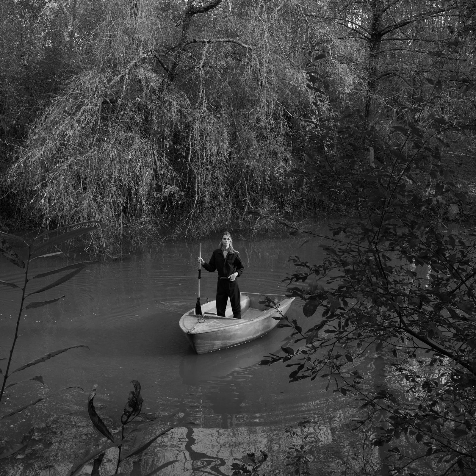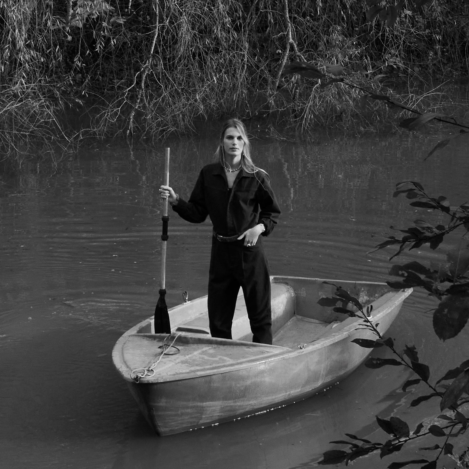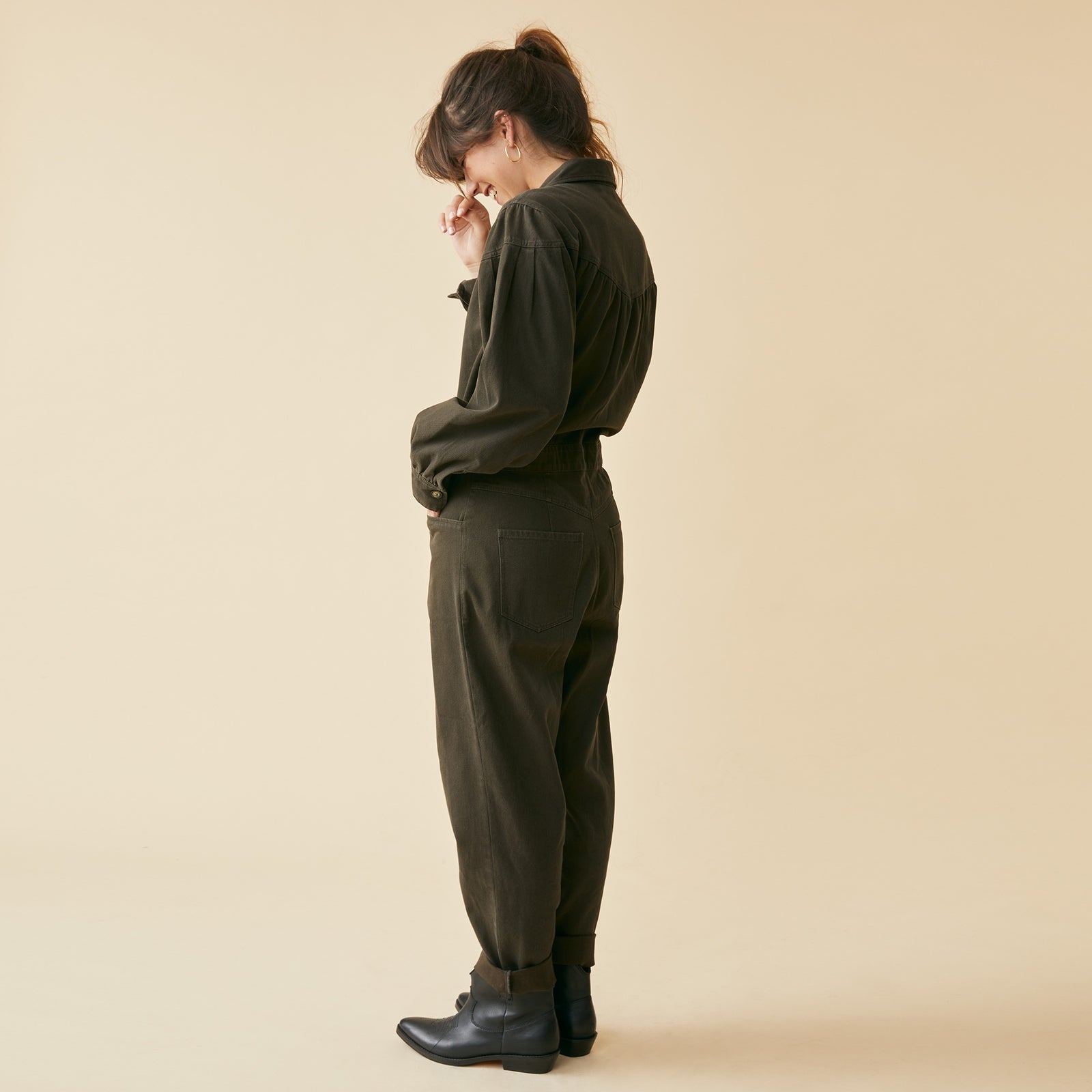 Combinaison manches longues en twill de coton lavé.