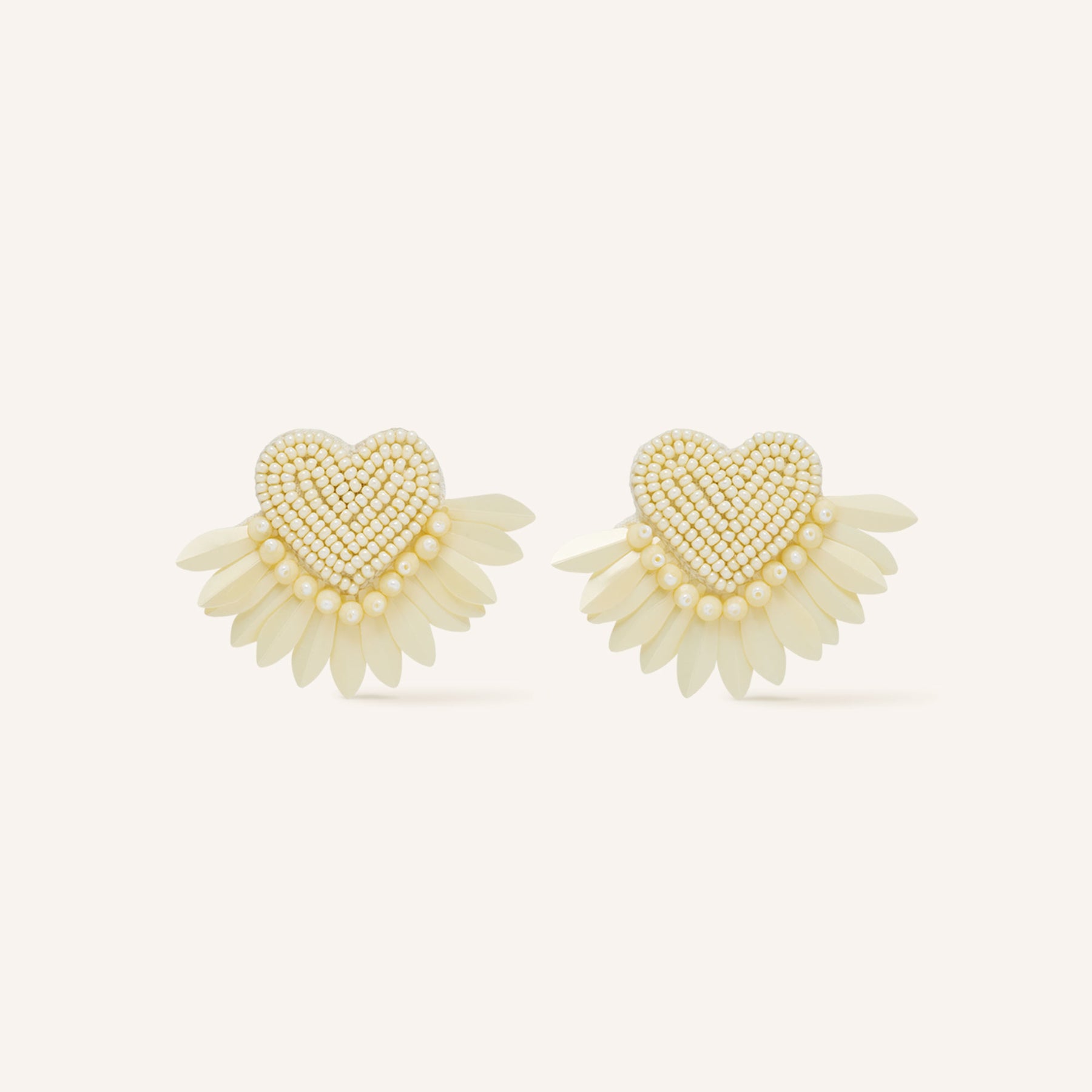Boucles d'oreilles cœur en perles de verre tissées et sequins effet plume.