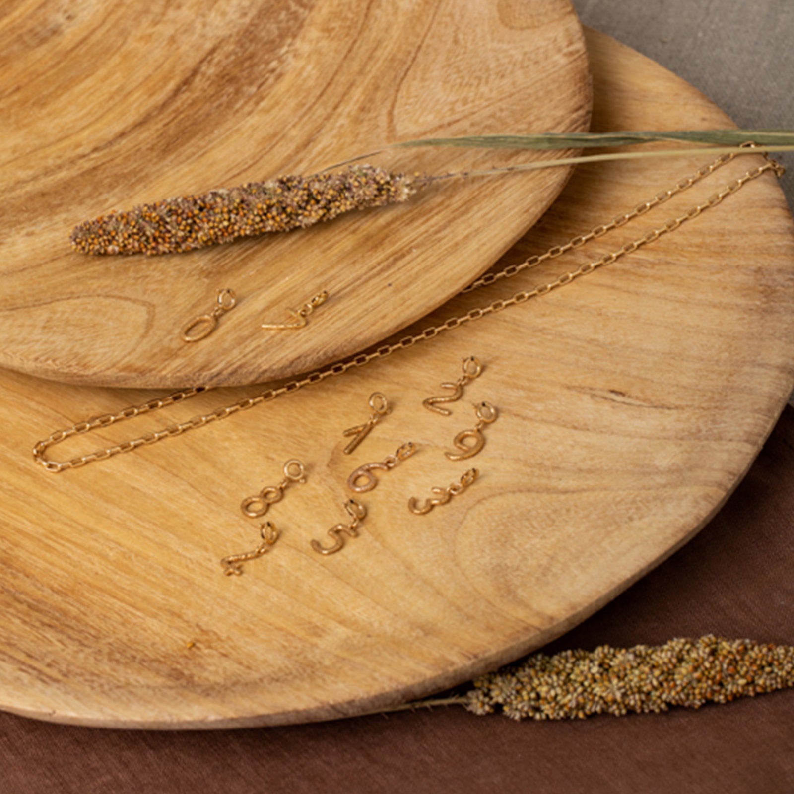 Pendentif numéro, forme irrégulière organique et métal martelé monté sur fermoir rond, amovible.