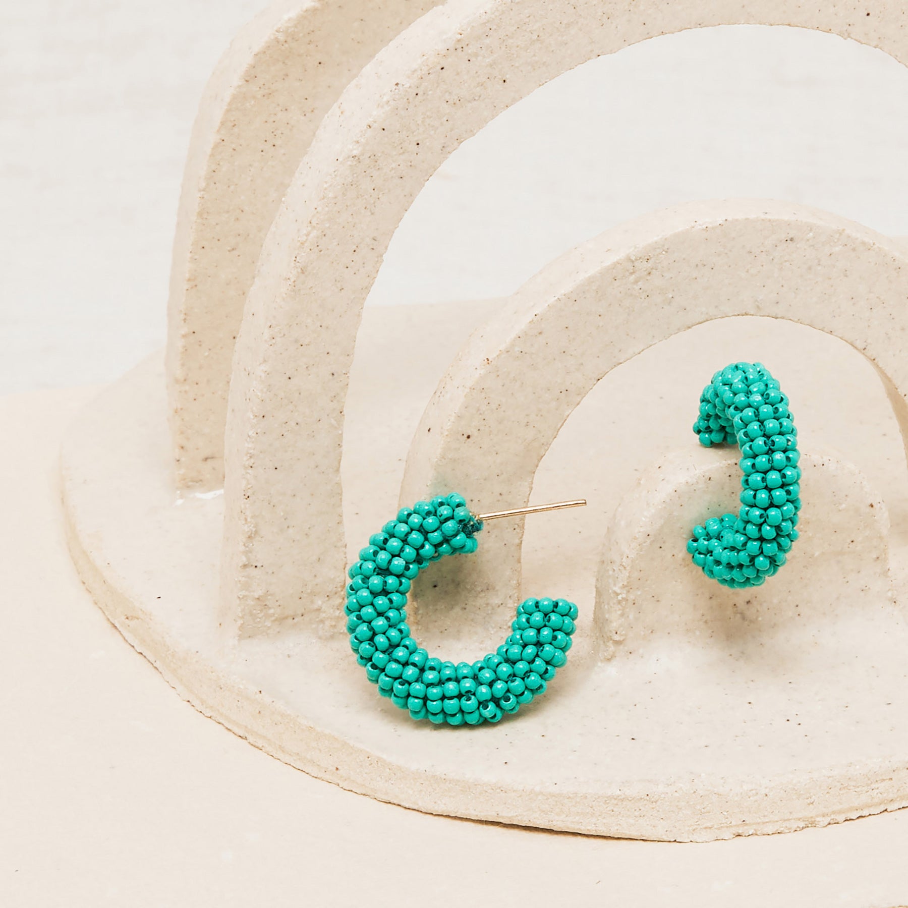Mini créoles ouvertes entourées de perles colorées tissées à la main.